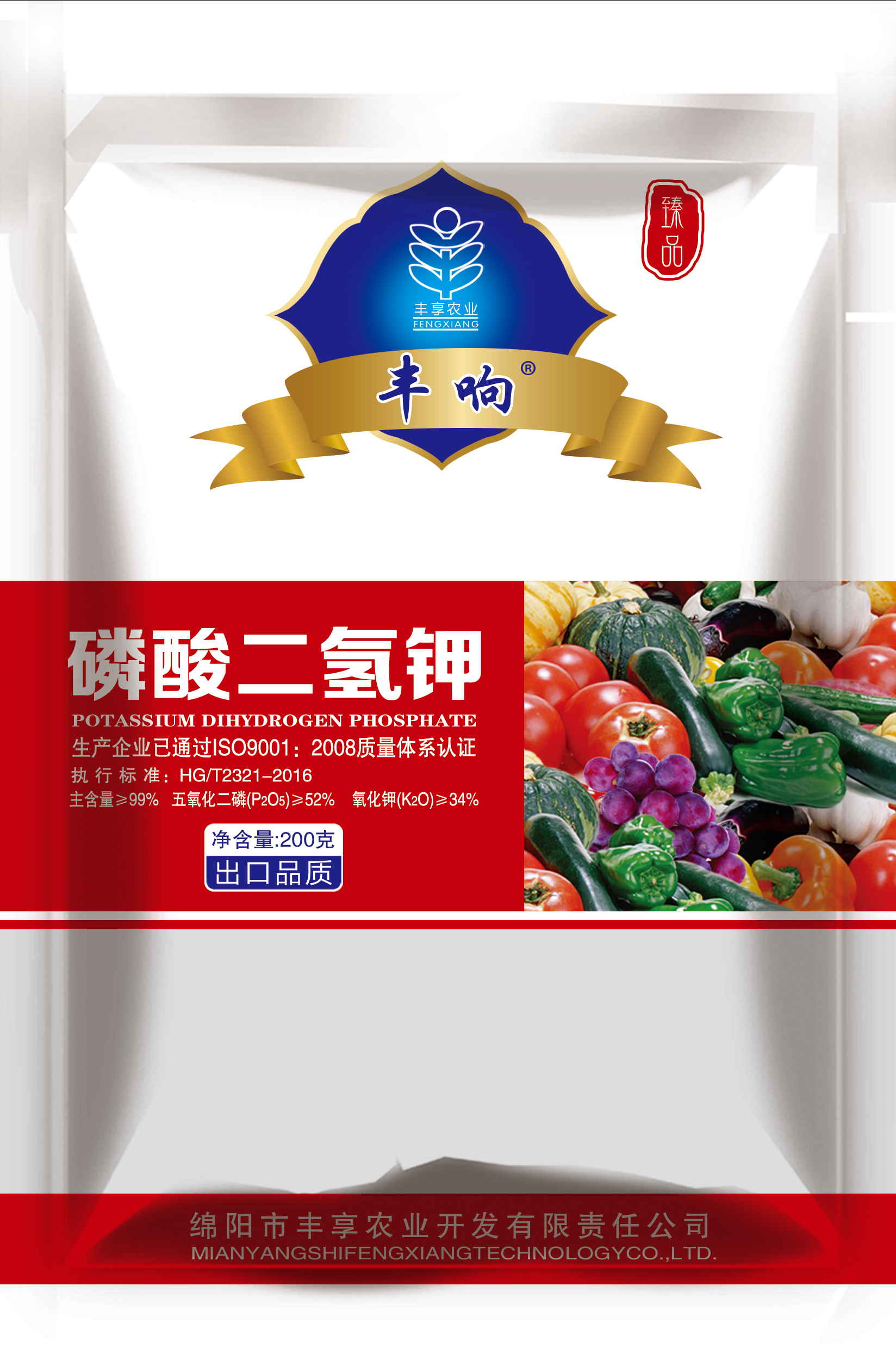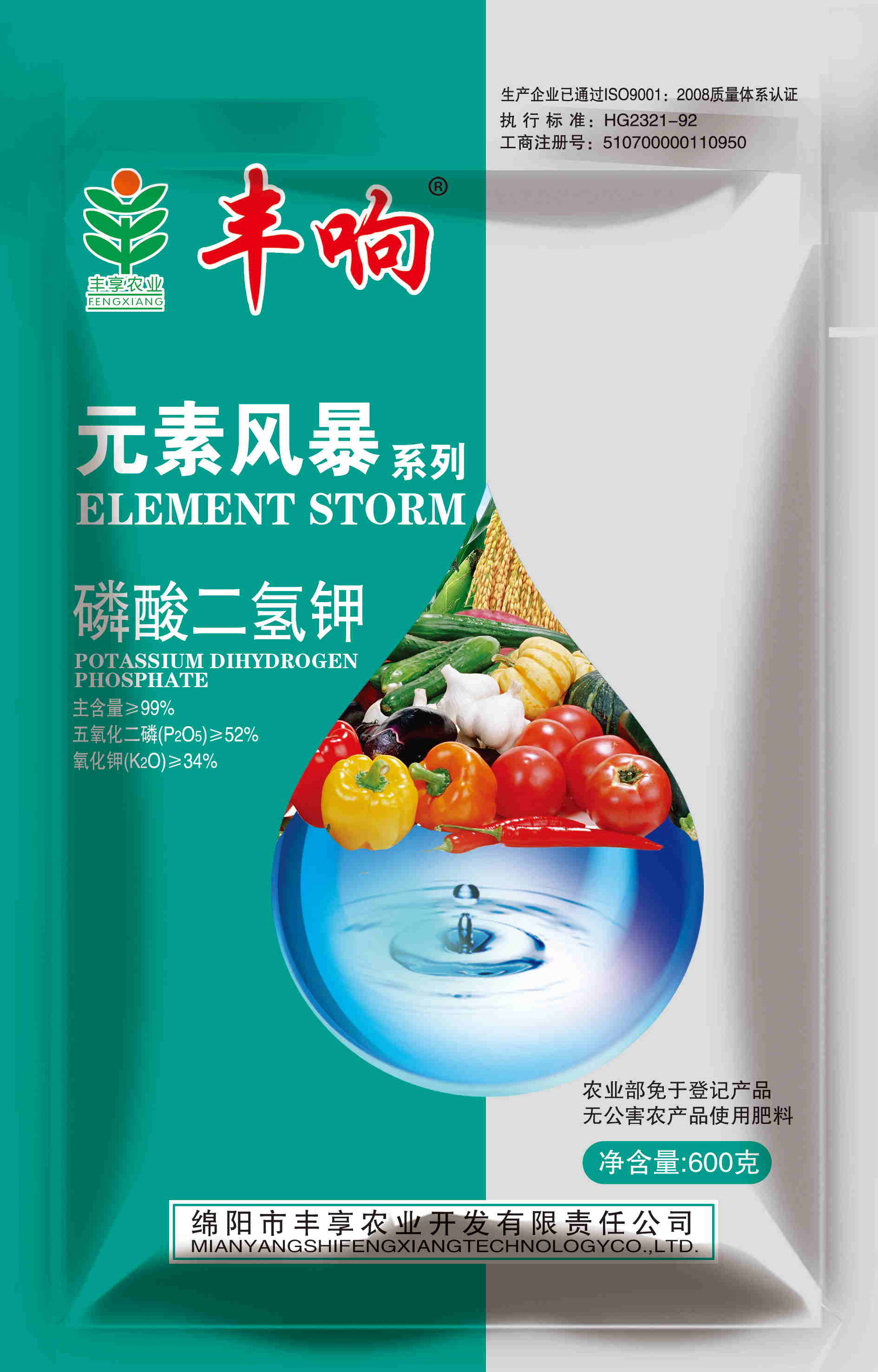 執行標準HG/T2321-2016,豐響熱法99%高品質磷酸二氫鉀。能有效為植物提供速效磷鉀,壯根、狀桿、抗旱、抗寒、抗逆、抗倒伏、促花、保花、保果、改善品質、提高產量。