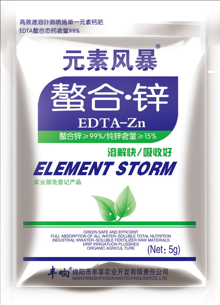 EDTA螯合鋅能增強光合作用,催化二氧化碳和碳水化合物的轉化,從而提光合作用強度,提高含糖量,使籽粒中的蛋白質提高。本品快速補鋅提高品質及產量,增加果品甜度和改善果品著色。增強作物抗寒。抗旱、抗病能力。